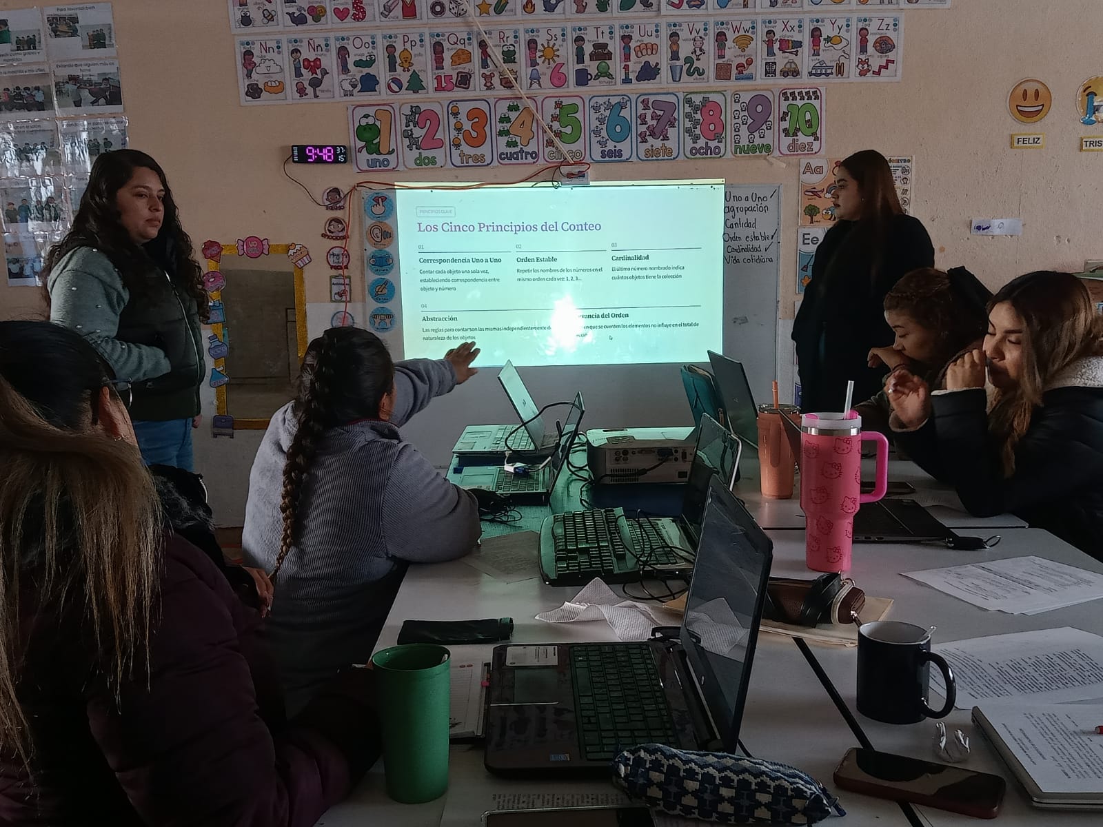 Un docente de apoyo expone ante los participantes los maestros reflexionan